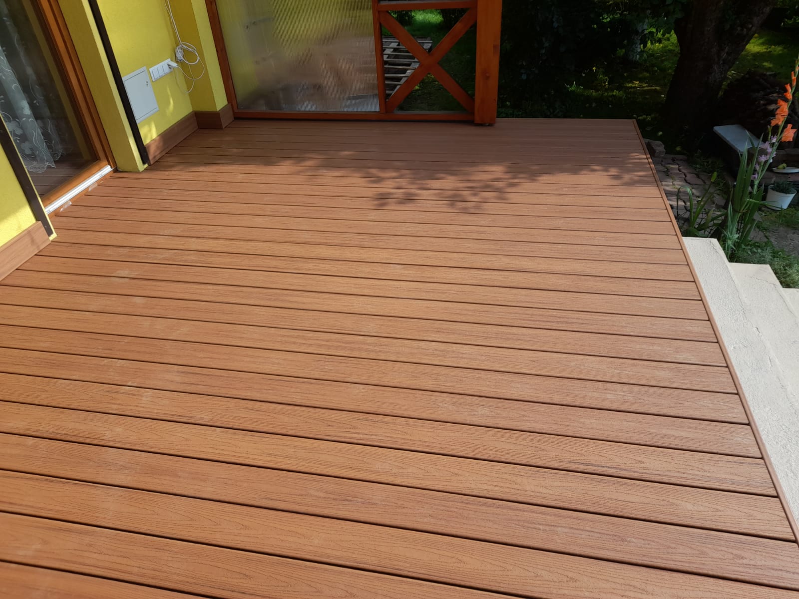 - Materiał: kompozyt WPC (60% drewno z recyklingu + 30% HDPE + pigmenty)