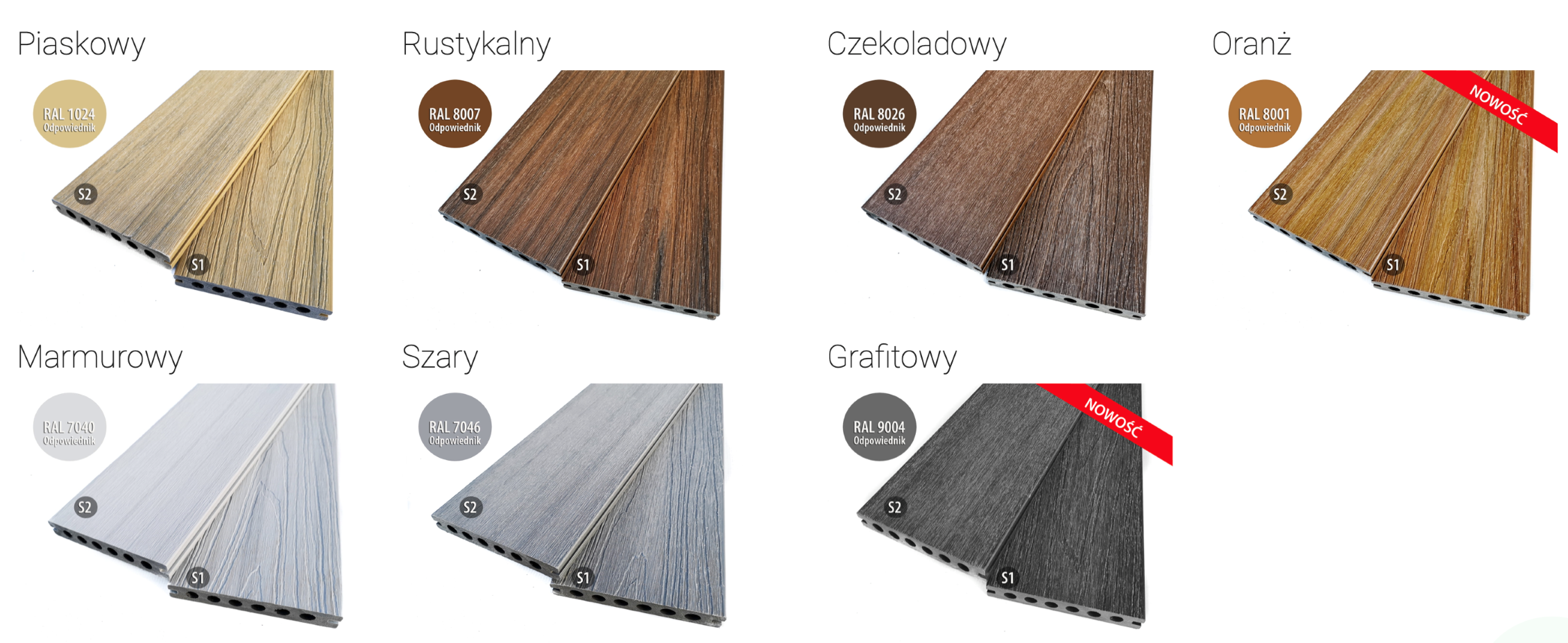 - Kolory: Czekoladowy, Dębowy, Grafitowy, Oranż, Piaskowy, Rustykalny, Szary